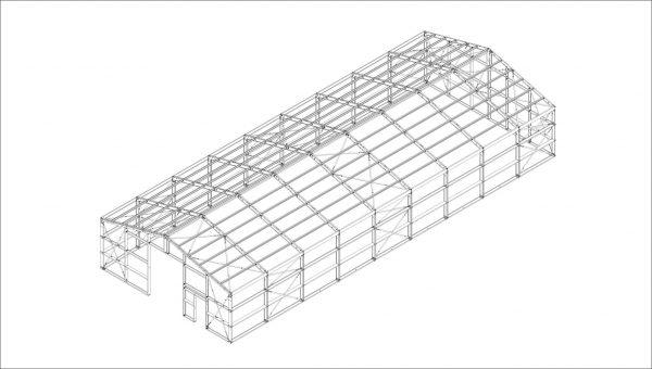 Hochfester verzinkter Stahl, c-Profil, Materialstärke 2,0 / 2,5 mm, Binderabstand 3,3 Metern.