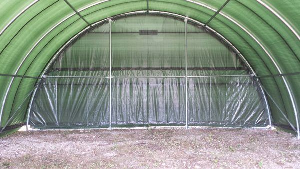 Stahlkonstruktion: 10 Jahre degressive Garantie gegen Durchrosten Plane: - HDPE: 3 Jahre degressive Garantie - PVC: 10 Jahre degressive Garantie Türe: 1 Jahr Garantie auf Mechanische Teile