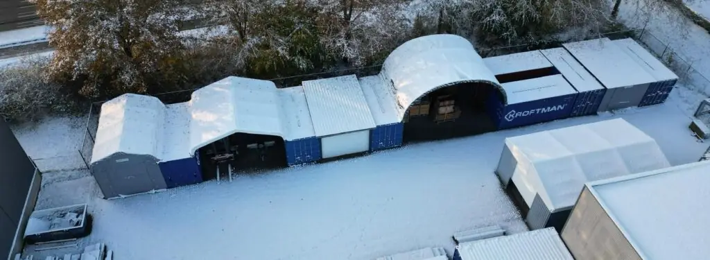 Kroftman Structures bietet eine breite Palette von Containerüberdachungen, die verschiedenen Wind- und Schneelastniveaus standhalten. Indem Sie die richtige Überdachung wählen, stellen Sie sicher, dass Ihre Investition sicher und nachhaltig ist. Unsere Produkte sind nach der EN-13782-Norm entworfen, was bedeutet, dass sie gegen kombinierte Wind- und Schneelasten beständig sind, für zusätzliche Sicherheit und Zuverlässigkeit.