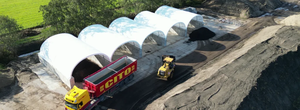 These shelters are ideal for covering bulk materials such as various types of waste, sand, and gravel.