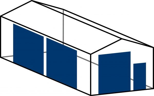 1 x overhead door 415×318 cm (H x W) and 1 x man door in front wall + 2 x overhead door 300×274 cm (H x W) in side wall