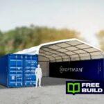 The CTS812 saddle roof container shelter is a medium to large container shelter suitable for 40ft containers. The CTS812 has a surface area of 96 m2 and is easy to assemble and disassemble. The building kit includes construction drawings and assembly manual. We offer a 10-year descending guarantee against rust perforation on the steel and a 3-year descending guarantee on the HDPE tarpaulin.