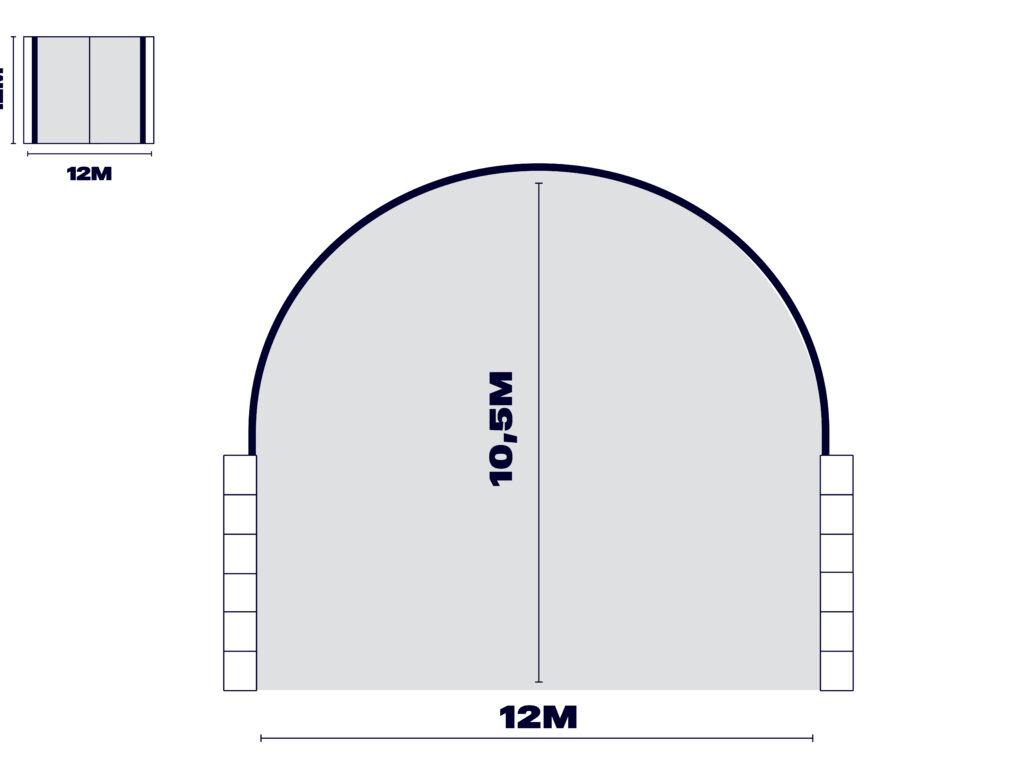 U kunt de overkappingen in lengtes van 6 meter onbeperkt verlengen. Dit kan eenvoudig en zonder aanpassingen aan het product. De verbinding (overlapping van het doek) is volledig wind- en waterdicht nadat de koorden zijn aangetrokken.
